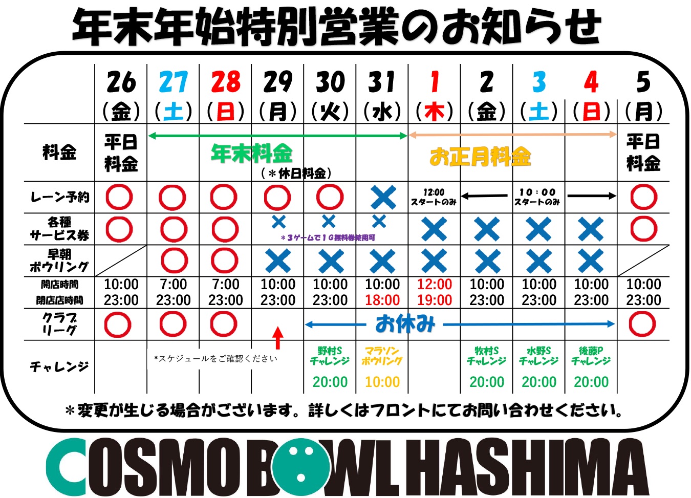 - ※イベントの為、休日でも早朝ボウリングをお休みすることがあります。
